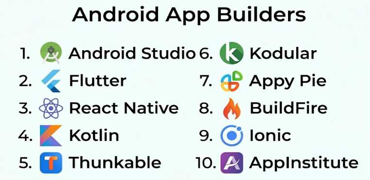 Android app builders offer a wide range of optionsโfrom full-code development environments like Android Studio to beginner-friendly no-code tools like Appy Pie and Kodular.