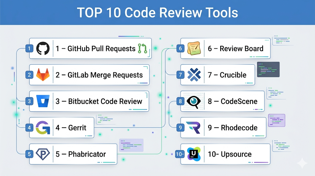 Code Review Tools are platforms that help developers review, discuss, and improve code before it is merged into the main codebase. In simple terms, they provide a structured way for teams to collaborate on code quality, catch bugs early, and enforce coding standards.