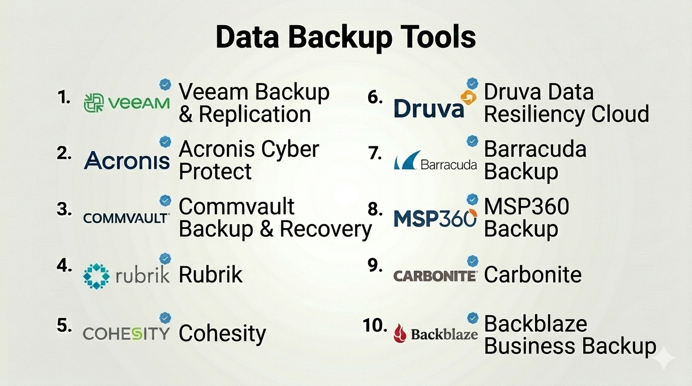 Data Backup Tools are software solutions that create copies of data and store them securely so it can be restored in case of data loss, corruption, cyberattacks, or system failures. These tools are essential for ensuring data protection, business continuity, and operational resilience.