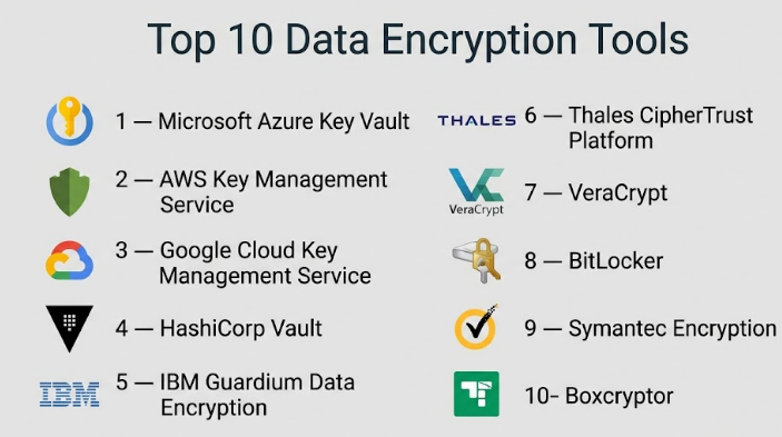 Data encryption tools play a critical role in modern security strategies, helping organizations protect sensitive data across applications, storage systems, and communication channels. As cyber threats evolve and regulatory requirements become stricter, choosing the right encryption solution is no longer optional—it’s a foundational decision. There is no single “best” tool for everyone. Cloud-native teams may benefit from AWS KMS or Azure Key Vault, while DevOps-driven organizations may prefer HashiCorp Vault for its flexibility. Enterprises with strict compliance needs might lean toward IBM Guardium or Thales CipherTrust, while individuals and small teams can rely on simpler tools like VeraCrypt or BitLocker.