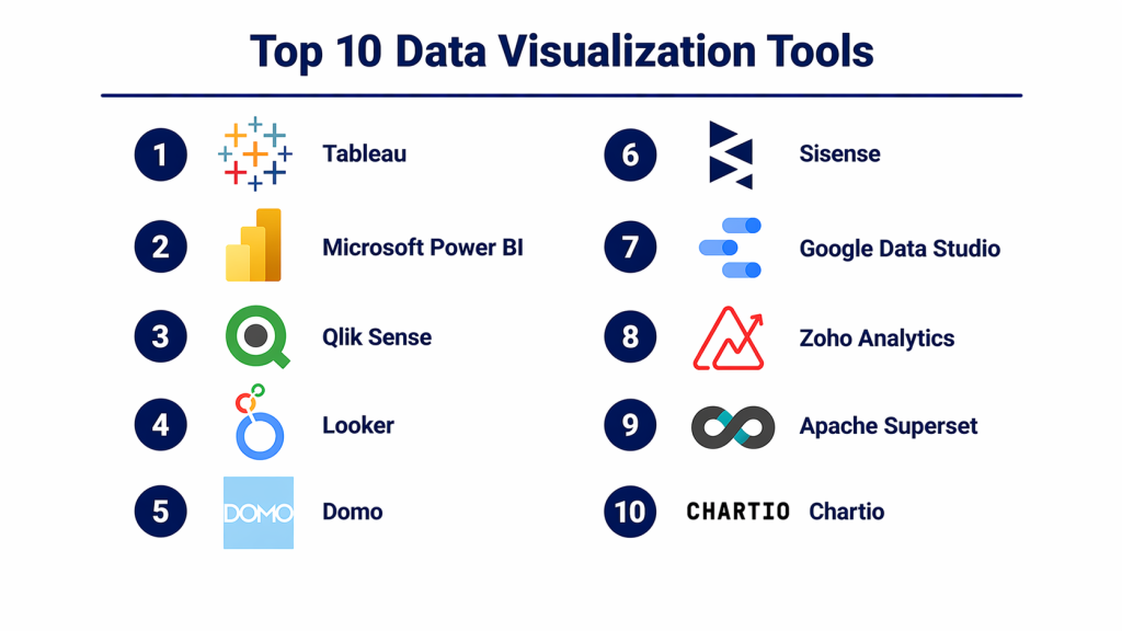 Data visualization tools have become essential for modern organizations that rely on data-driven decision-making. Instead of manually analyzing spreadsheets, teams now use visual dashboards to quickly identify trends, risks, and opportunities. However, choosing the right tool depends heavily on your specific needs. If you are a small team or individual, affordability and simplicity should be your priority, making tools like Looker Studio or Zoho Analytics a good fit. Mid-sized organizations may benefit from platforms like Tableau or Qlik Sense, which offer deeper analytics capabilities. Enterprises, on the other hand, should focus on governance, scalability, and integration, where tools like Power BI and Looker excel.