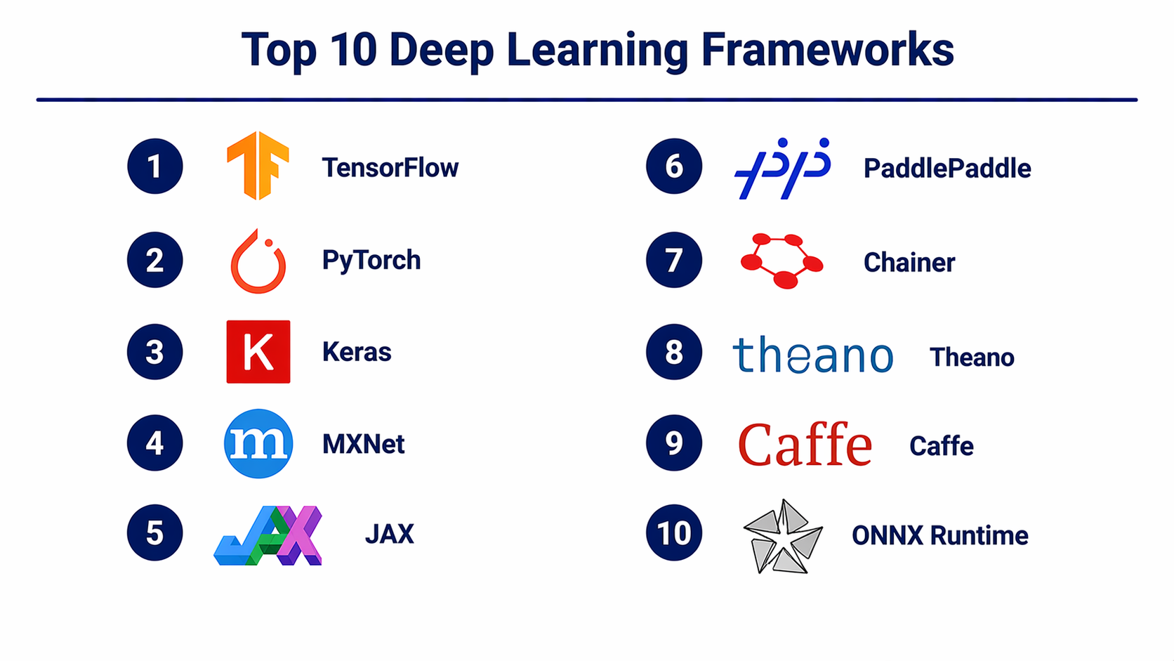 Deep Learning Frameworks are the foundation of modern AI systems, enabling teams to build everything from simple neural networks to complex generative AI models. Each framework comes with its own strengthsโsome prioritize ease of use, others focus on scalability, performance, or research flexibility. There is no one-size-fits-all solution. If you are just starting, frameworks like Keras or PyTorch offer simplicity and faster learning. For enterprise-scale applications, TensorFlow and ONNX Runtime provide robust deployment and scalability. Research-focused teams may benefit from JAX or PyTorch due to flexibility and performance.