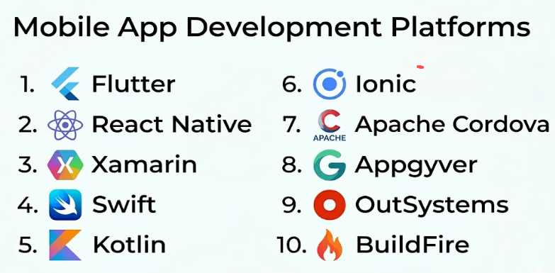 Mobile app development platforms offer a wide range of options—from native development tools like Swift and Kotlin to cross-platform frameworks like Flutter and React Native, and even no-code builders like Appgyver.