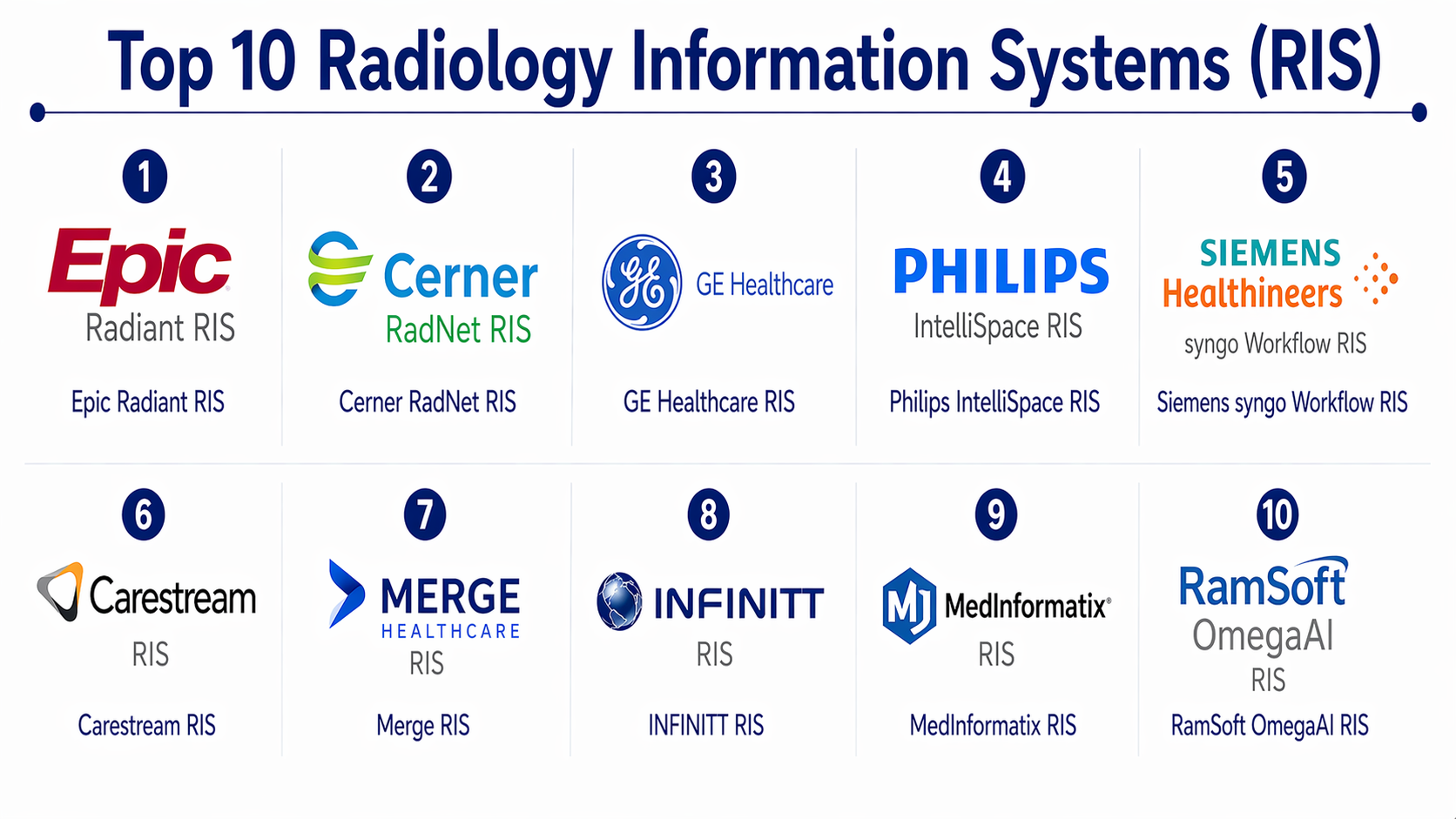 Epic Radiant, Cerner RadNet, and GE RIS dominate large-scale deployments.