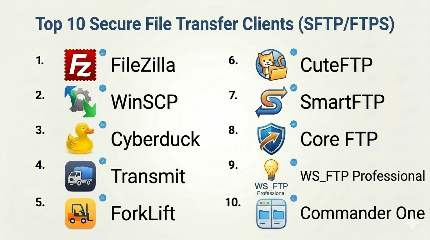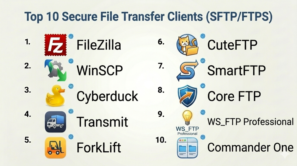 Top 10 Secure File Transfer Clients (SFTP/FTPS): Features, Pros, Cons & Comparison