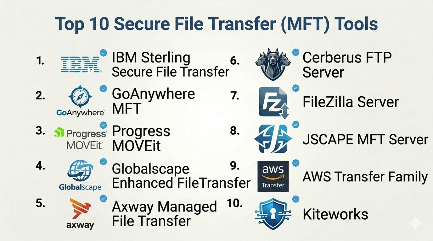 Top 10 Secure File Transfer (MFT) Tools: Features, Pros, Cons & Comparison