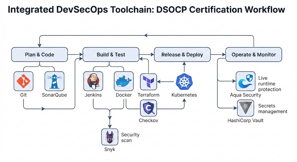 - What tools are covered in the DSOCP curriculum? The curriculum covers a wide range of industry-standard tools including SonarQube for static analysis and OWASP ZAP for dynamic testing. Furthermore, you will learn about HashiCorp Vault for secrets management and Aqua Security for container protection. Additionally, the program includes training on Jenkins, Git, and various cloud-native security features. Consequently, you will gain hands-on experience with the most relevant technologies.
